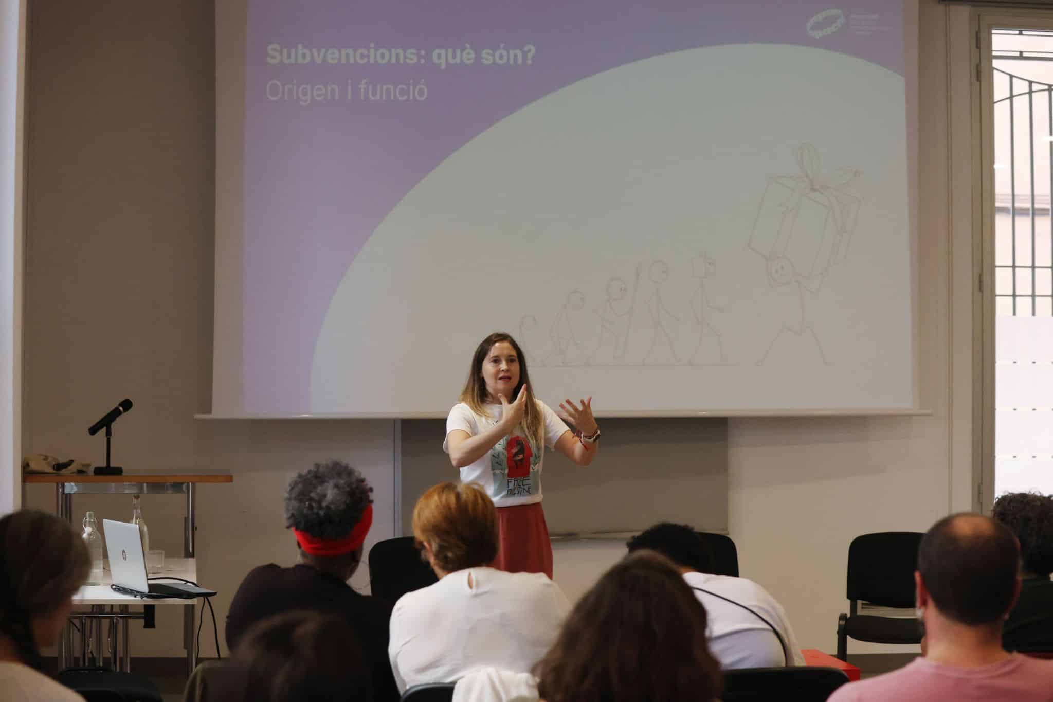 El plat fort de la jornada van ser dues ponències. La primera va anar a càrrec de Rebeca Segura, sòcia fundadora de la cooperativa AmbTu i consultora especialitzada en estratègia i gestió de projectes d’impacte social, qui va compartir consells i recomanacions sobre com es pot finançar la Responsabilitat Social dins d’una organització, el pes de les subvencions i la importància d’una bona gestió econòmica per tal que aquests recursos econòmics siguin sostenibles a llarg termini. «Els diners no ho són tot, però ajuden, i han d’estar sempre alineats amb l’estratègia, tenir cura de les persones treballadores i promocionar l’entorn. Les subvencions són una eina, una eina al servei de la missió de l’organització. Les opcions de finançament sobre la taula són moltes: subvencions, patrocinis, donacions, micromecenatges. Hi ha un món de possibilitats a l’abast», va dir Segura.